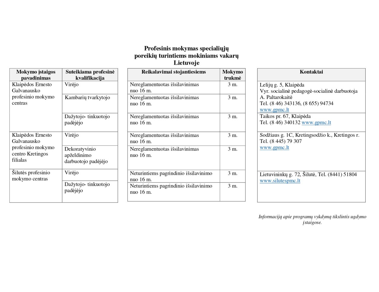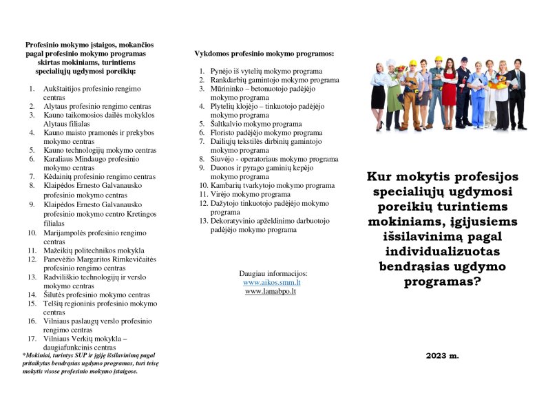 Kur mokytis profesijos specialiųjų ugdymosi poreikių turintiems mokiniams